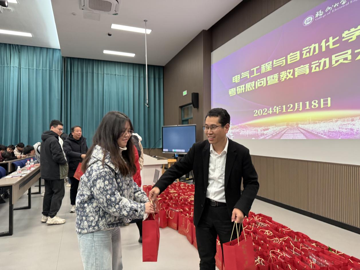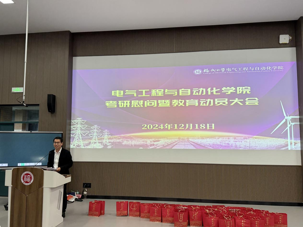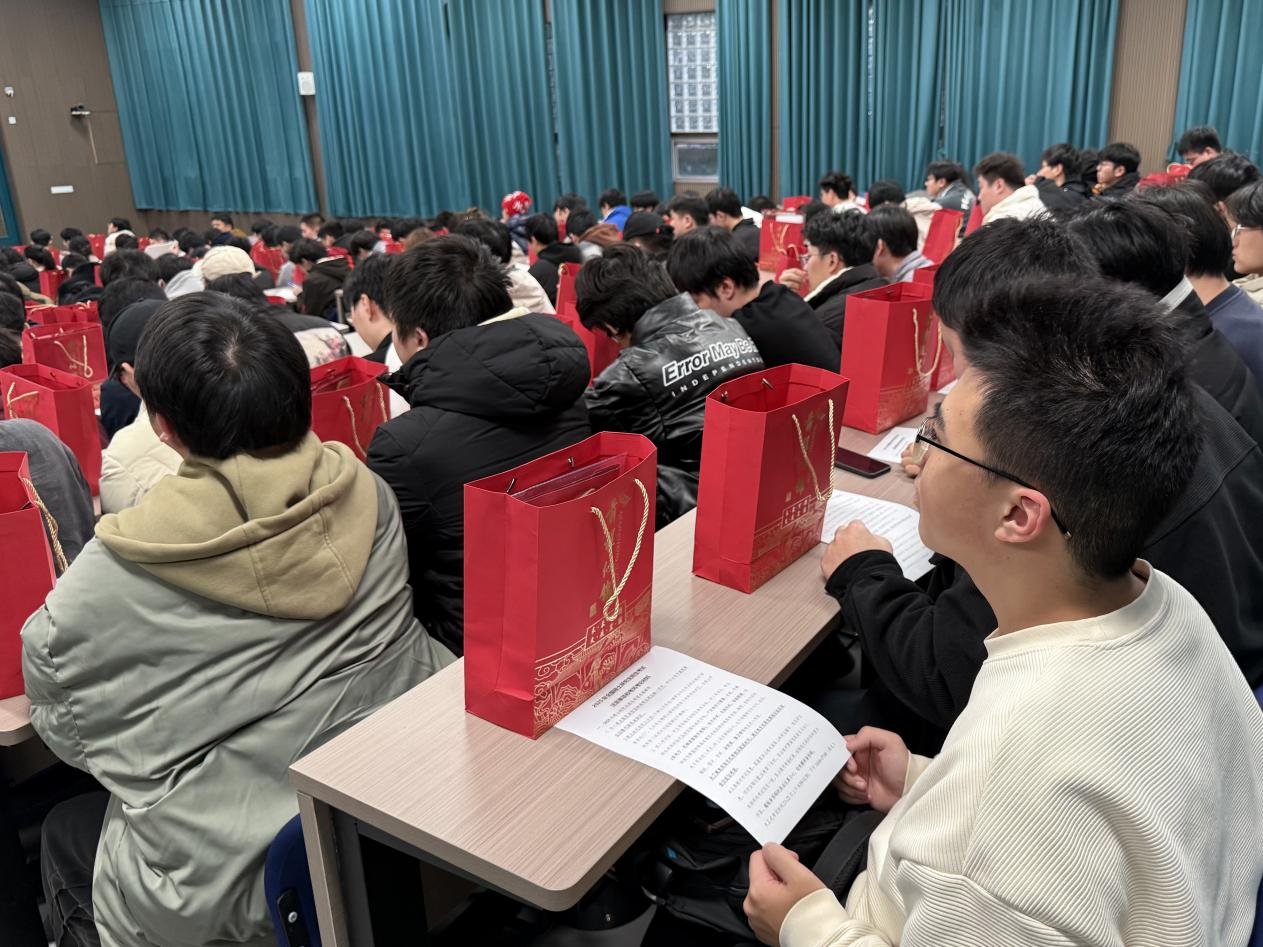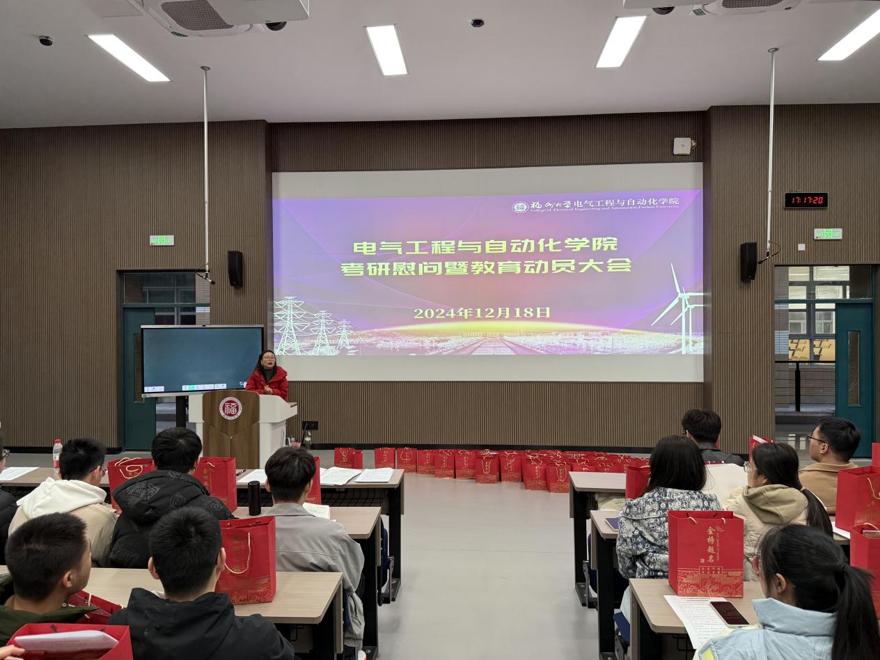 于12月18日召开了考研慰问暨教育动员大会。此次大会旨在激励即将踏上考场的2025届考研学子,为他们送上诚挚的祝福与坚定的支持,帮助他们以最佳的精神状态迎接这场人生的重要挑战。院党委副书记杜领军、王武副院长、毕业班辅导员梁艳华、卢煜以及全体2021级考研学子共同参加了此次大会。