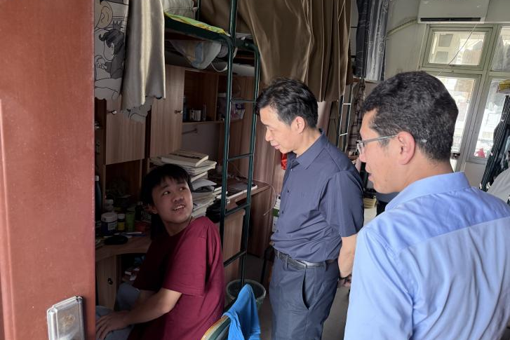 党委书记潘志辉、党委副书记杜领军与各年级辅导员一同走访了学生宿舍。