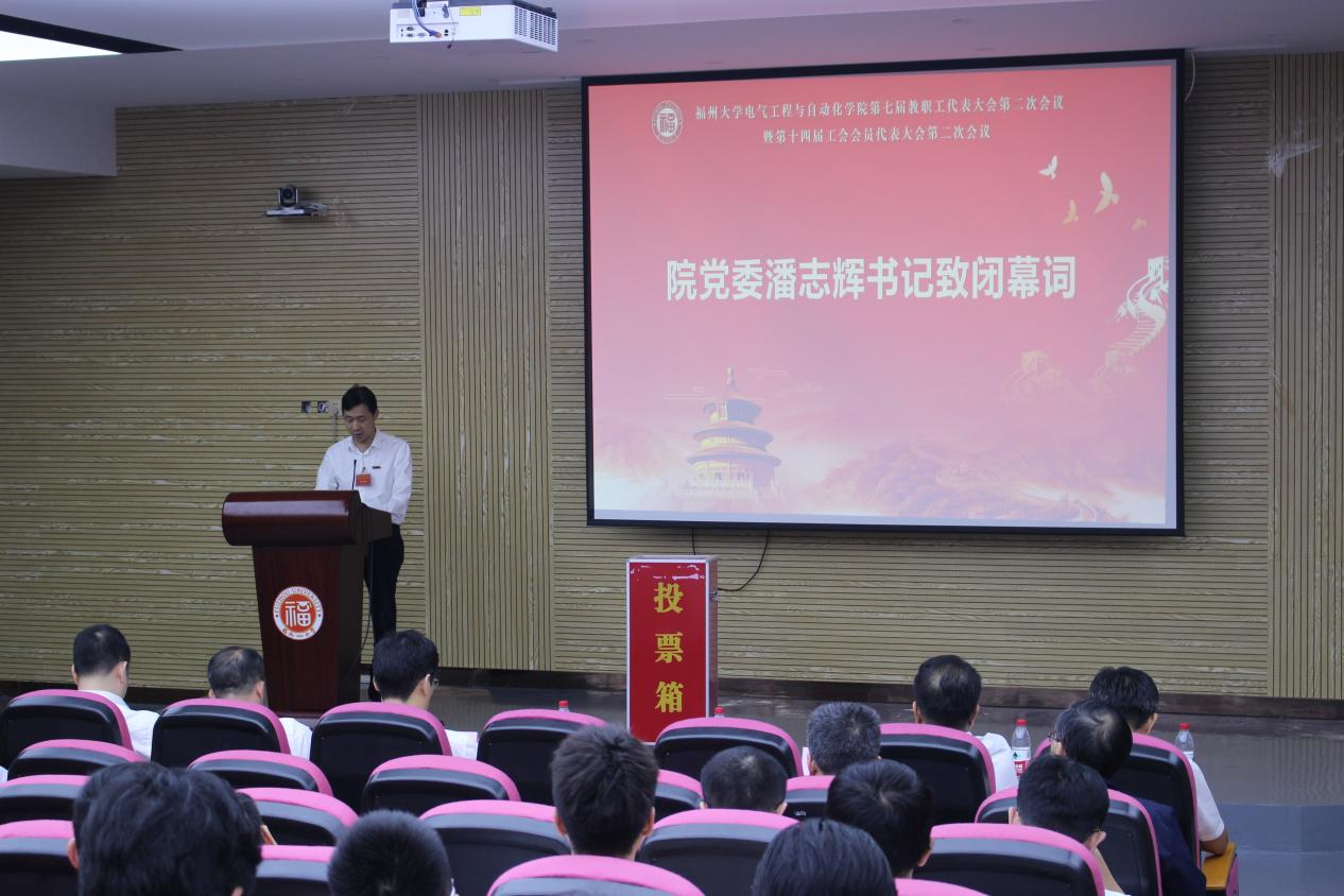 闭幕式上,院党委书记潘志辉致辞。他指出,本次大会是一次总结过去、凝聚共识、展望未来的动员大会,也是一次共商大计、共担使命、共绘蓝图的工作大会,对推动学院新阶段实现新跃升具有重要意义。潘志辉书记就加快推进“一流”学院建设、实现高质量发展提出三点意见:一是提高站位,统一思想,认真编制好学院“十五五”发展规划纲要,把学院工作摆到全国一流坐标体系中去衡量;二是作风优良,务求实效,解决学科、人才等瓶颈问题,出实招、务实功、求实效,真正想方设法解决实际问题,拒绝“躺平”,积极主动谋划学院发展;三是整合资源,形成合力,全院上下要整合校内校外、院内院外的资源,树立正妹av
