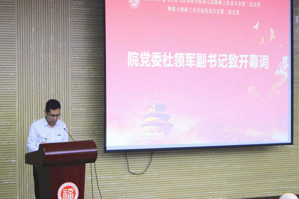 教职工的民主参与、民主决策和民主监督意识。推动学院民主政治建设。杜领军副书记希望代表们以高度的责任感和使命感认真履行职责,积极建言献策,共同商讨学院发展大计,开一场统一思想、凝聚力量、和谐奋进的大会,为学院发展注入新鲜活力。同时呼吁教职工在今后工作中继续发扬团结协作、拼搏进取的精神,为实现学院一流学科建设目标贡献自己的力量。