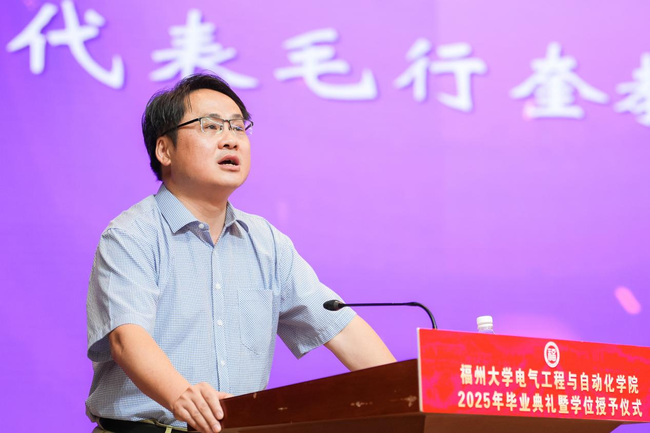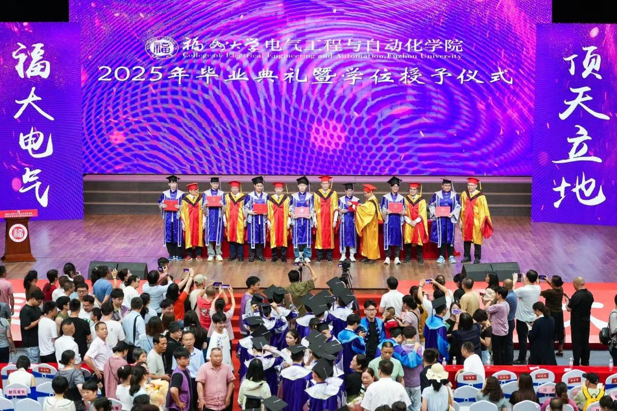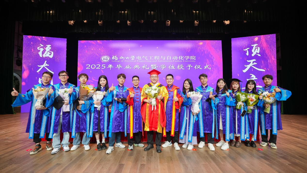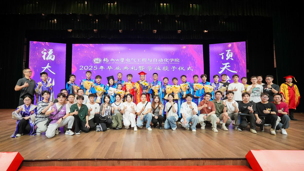 “亲爱的同学们,毕业的钟声已经敲响,但离别从来不是终点,而是你们迈向星辰大海的起点。愿你们带着对福大电气的热爱,勇敢奔赴下一场山海。母校会永远牵挂你们、关注你们、支持你们、祝福你们。祝2025届全体毕业生:前程似锦,一路繁花!在强国建设、民族复兴的伟大征程中,挥洒青春,成就梦想,创造属于你们这一代电气人的辉煌篇章!”