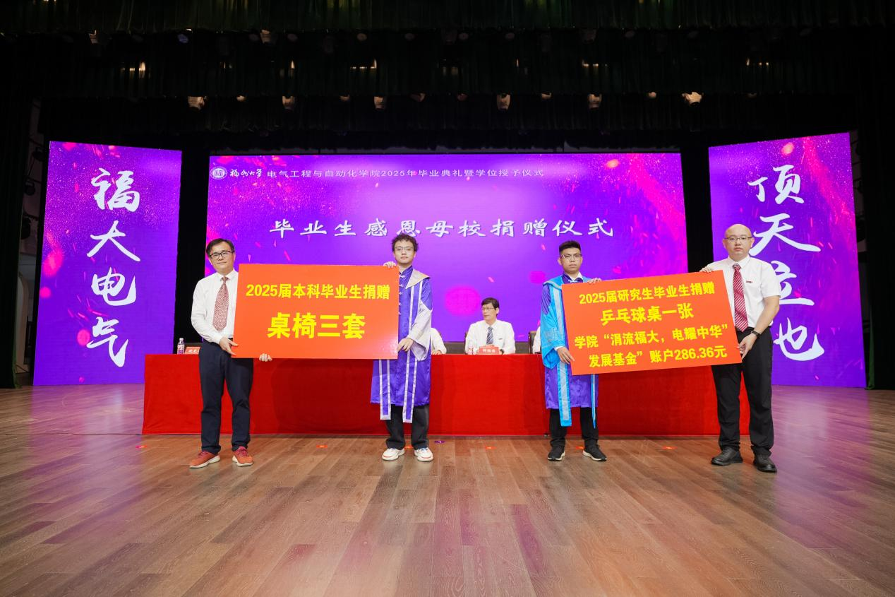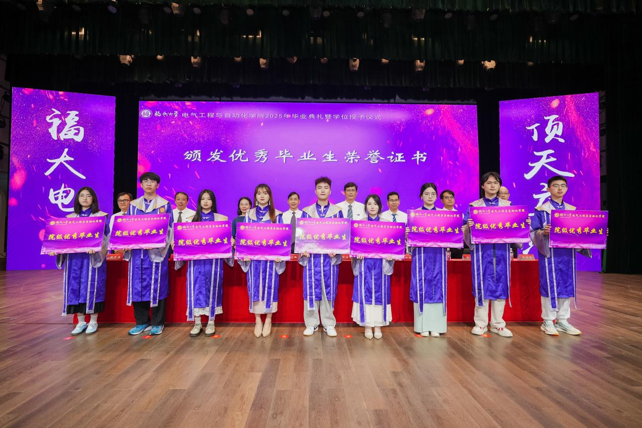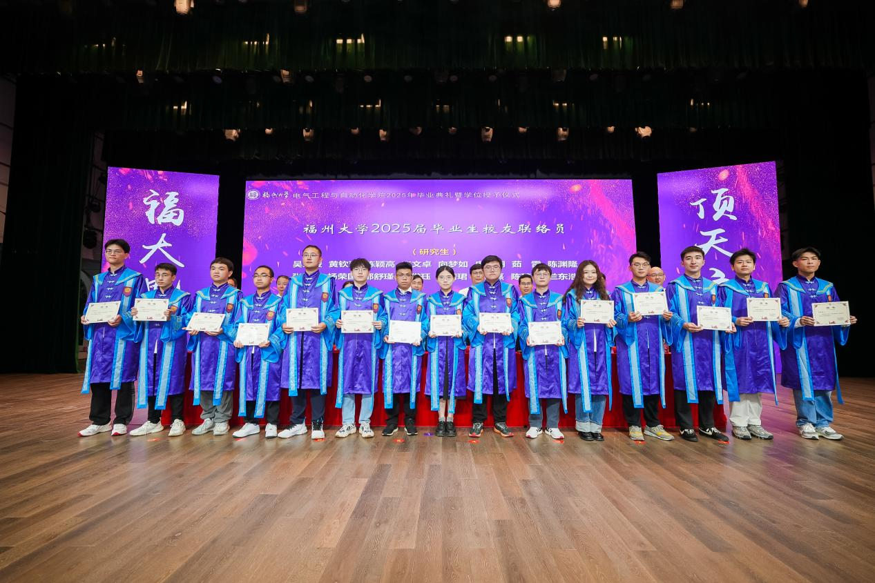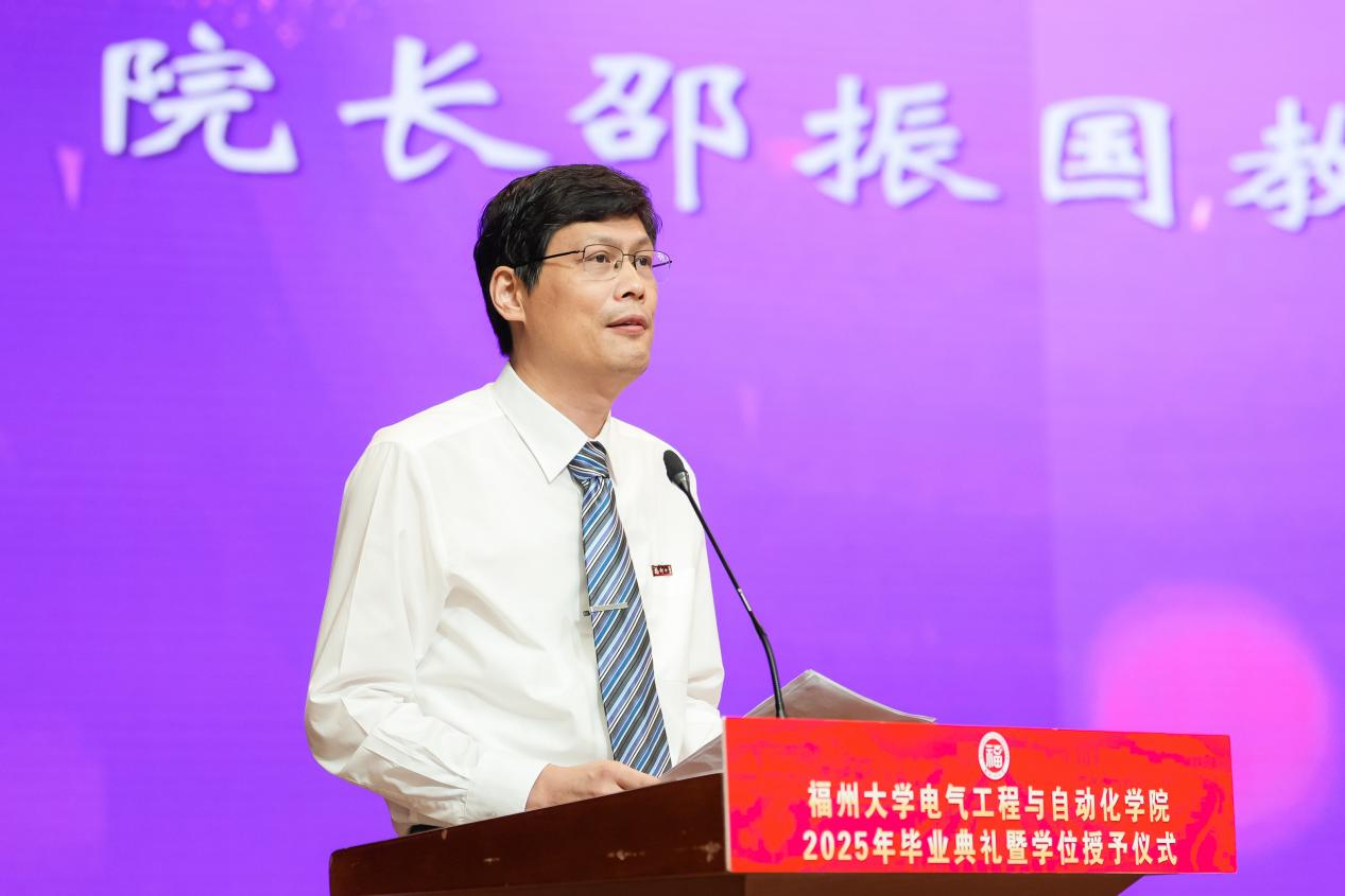 “亲爱的同学们,毕业的钟声已经敲响,但离别从来不是终点,而是你们迈向星辰大海的起点。愿你们带着对福大电气的热爱,勇敢奔赴下一场山海。母校会永远牵挂你们、关注你们、支持你们、祝福你们。祝2025届全体毕业生:前程似锦,一路繁花!在强国建设、民族复兴的伟大征程中,挥洒青春,成就梦想,创造属于你们这一代电气人的辉煌篇章!”