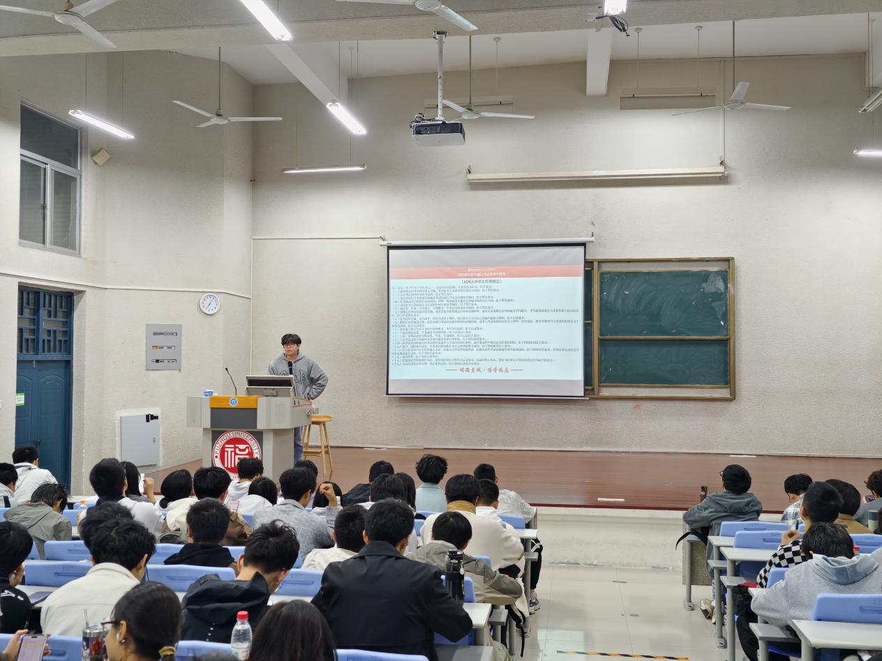2025级本科诚信考试教育年段会在铜盘校区科报厅A顺利召开。学院党委副书记杜领军以及全体2025级本科生参会,年段会由辅导员李剑峰老师主持。