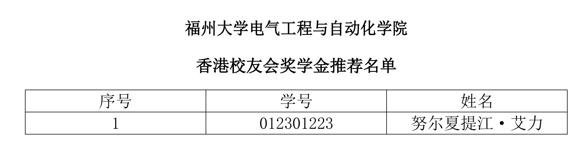 经学生本人申请,年级辅导员审核,学院学生资助工作小组成员讨论,结合各年级申请人年度成绩排名、综合测评、科研竞赛、所获奖助以及家庭经济情况等综合因素考虑,本着公平公正公开的原则,现学院学生资助工作小组决定推荐努尔夏提江·艾力同学参与正妹av 2024年“香港校友会奖学金”的评选。现予以公示,公示时间为2024 年12月16日-2024年12月19日,在此期间若对上述名单 存有异议,请及时反馈给各年级辅导员。