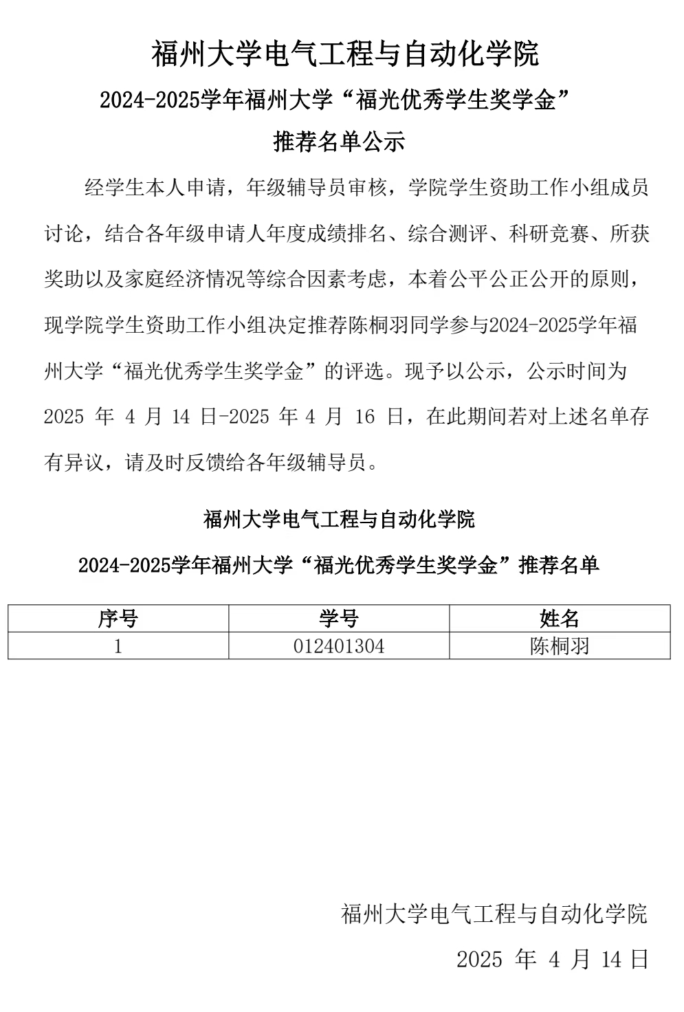 正妹av 2024-2025学年正妹av “福光优秀学生奖学金” 推荐名单公示