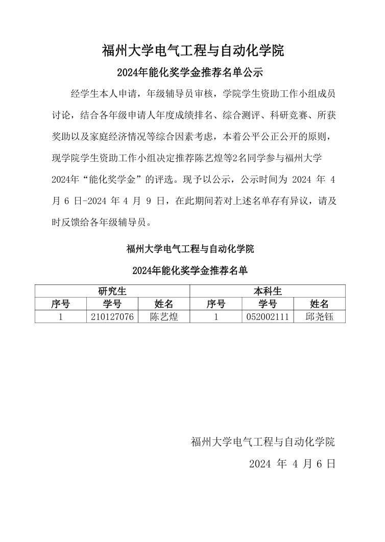 正妹av 2024年能化奖学金推荐名单公示