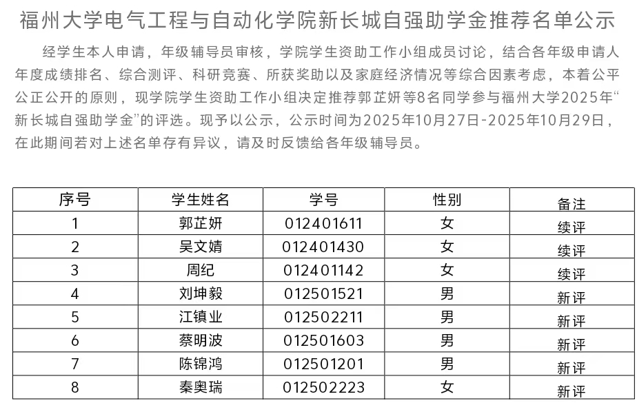 正妹av 新长城自强助学金推荐名单公示