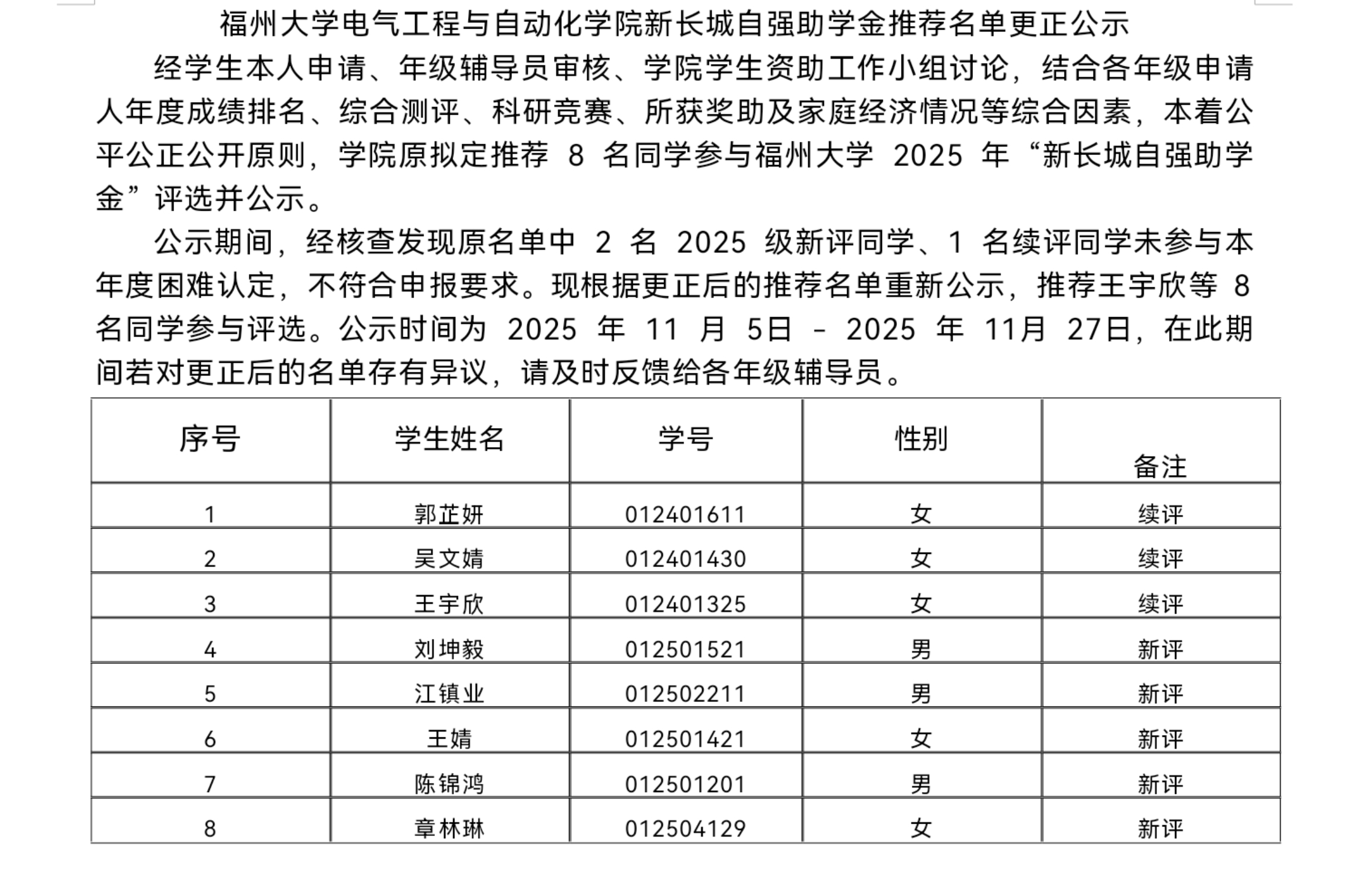 正妹av 新长城自强助学金推荐名单更正公示