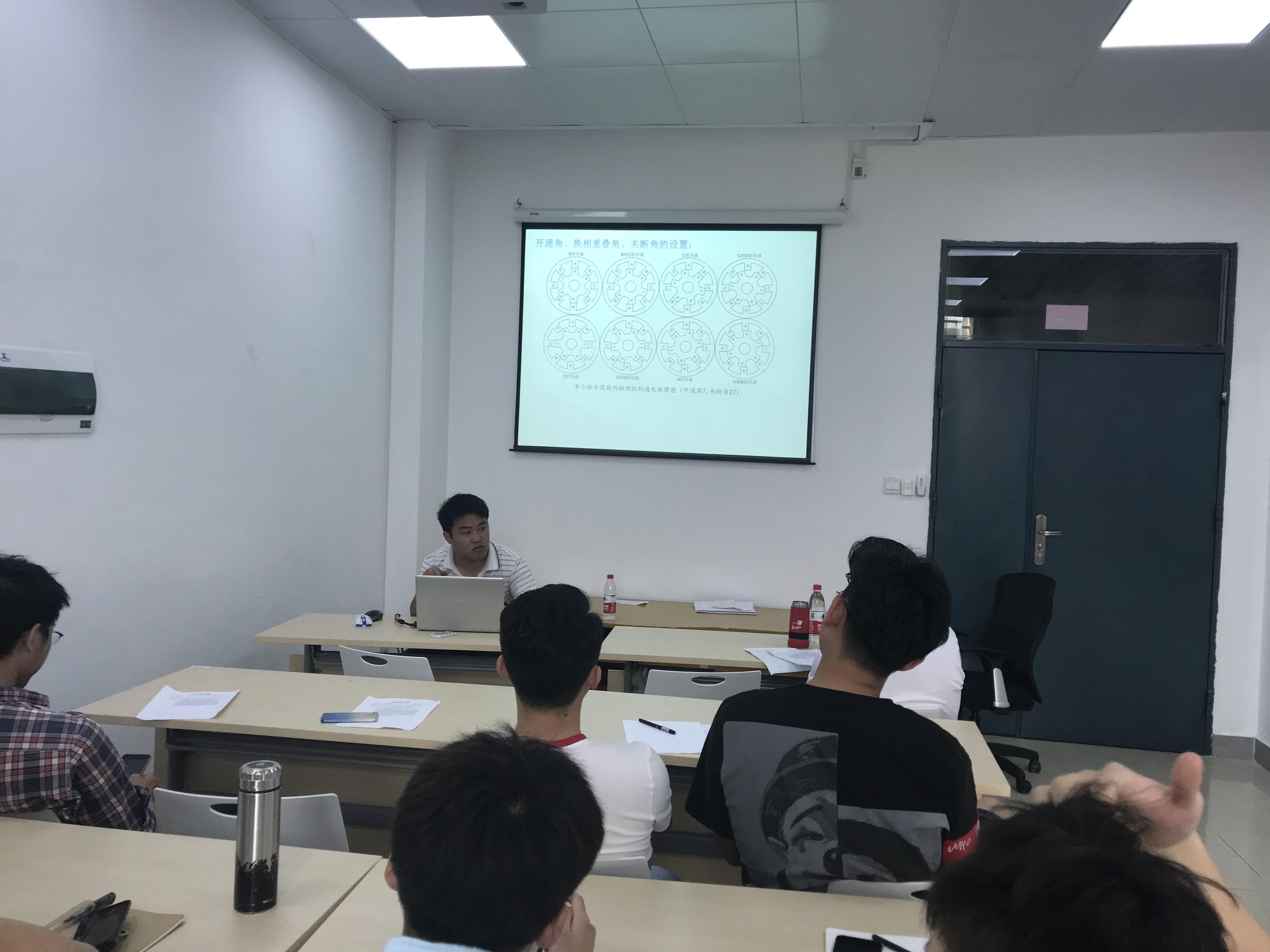 在主持人简单开场过后,报告会开始了。本次报告会报告内容为阮俊峰同学的《开关磁阻电机转矩脉动抑制研究》、肖庆豪同学的《基于转矩角的永磁同步电机混合式调速控制》、黄李威同学的《无刷直流电机转矩脉动抑制研究》以及黄凯同学的《基于电磁辐射的交直流电弧故障检测研究》。