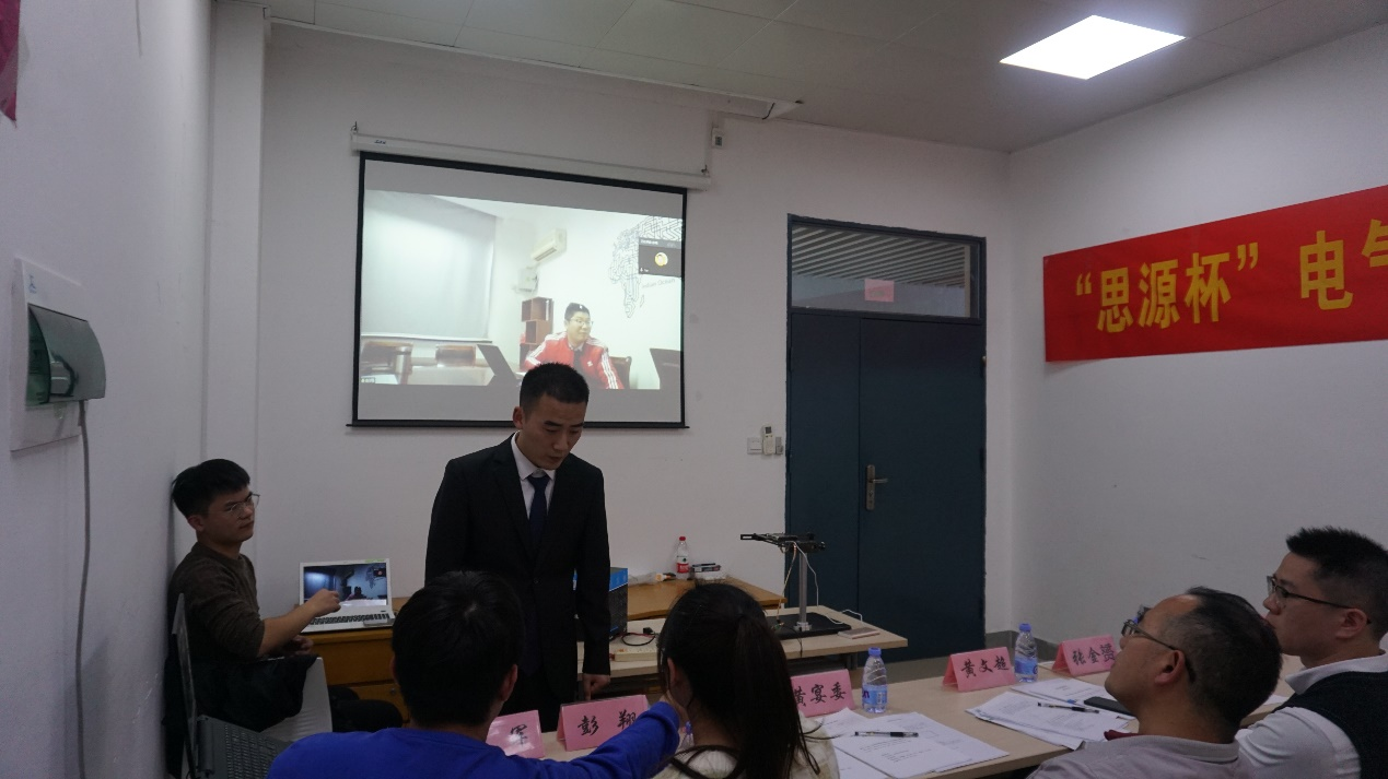 2020年研究生科技月企业命题大赛在新楚楼北211会议室拉开序幕。此次大赛的评审是线上结合线下的形式,通过直播的方式将现场与思源电气集团连线。担任线上评审的评委老师有:思源电气集团如高高压电器有限公司研发总监兼总工程师林魏岩老师、思源电气集团如高高压电器有限公司总工程师魏军老师、综合管理部部长张金赟老师、测试部部长彭翔老师以及流程与质量管理部部长王柳老师。