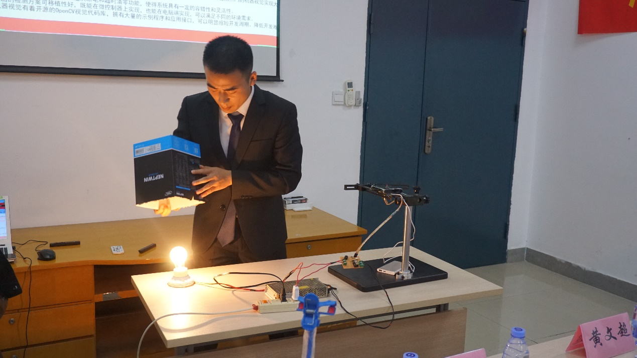 比赛开始后参赛选手们向评委老师和观众们介绍了各自作品的工作原理、实现方式以及优点,并在现场进行展示,然后与线上各个评委老师进行交流与互动。