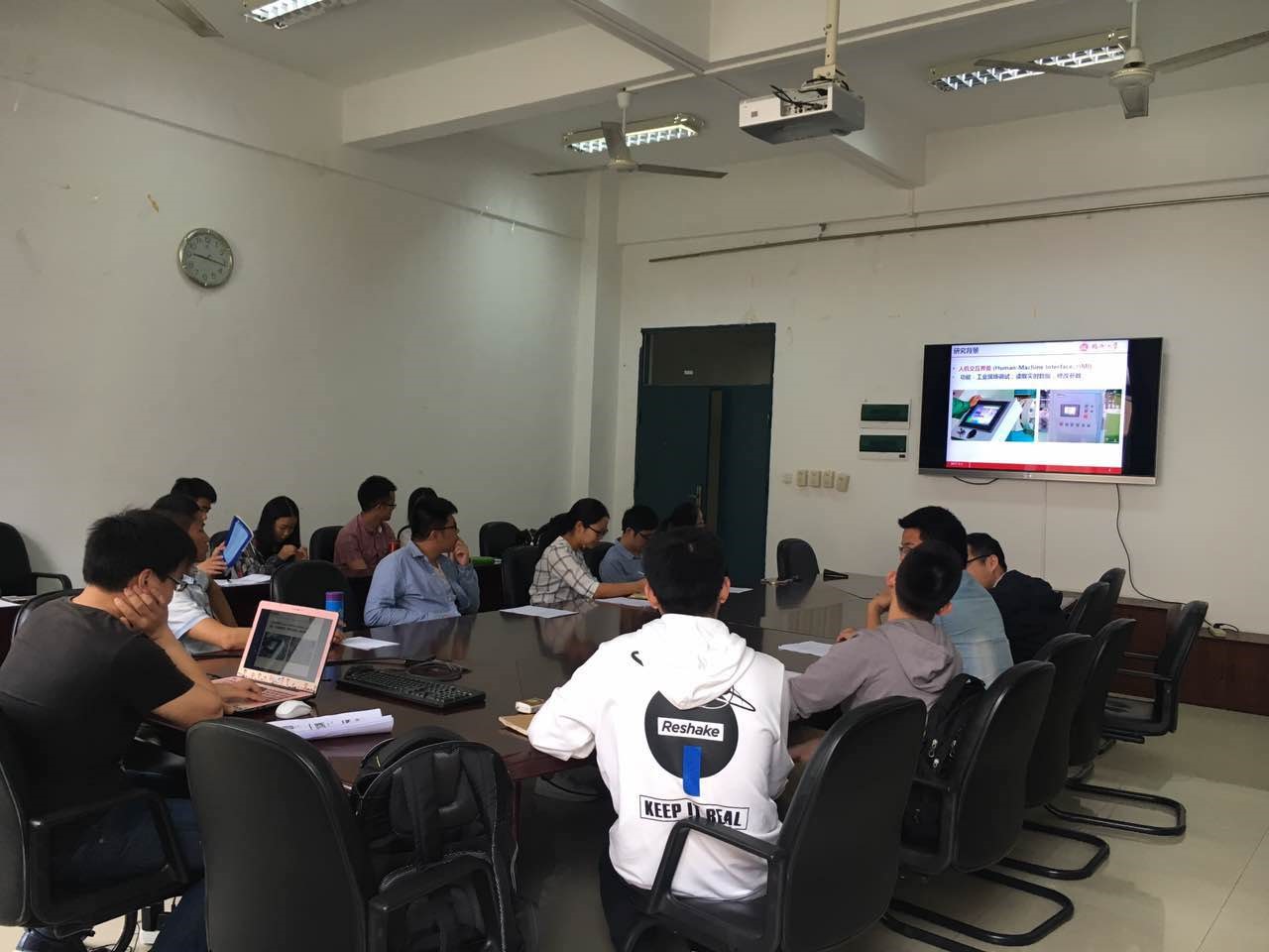 本次报告会的顺序依次是陈盛勤同学的《基于自主意愿控制肘关节的功能性电刺激系统研究》、赖添悦同学的《核密度估计算法结合近红外光谱技术鉴别三叶青产地》、乐喜同学的《面向无线人机交互的多设备连接算法研究》、李天培同学的《基于ATT7022E多功能电力仪表的设计》、林双杰同学的《萤火虫算法结合连续投影算法的近红外光谱波长优选研究》、刘广仑同学的《基于足迹的无线传感器网络位置服务算法研究》、王远竹同学的《伺服高速轨迹规划与精密跟踪控制的研究》、郑先娜同学的《基于Delta算子离散化方法的质子交换膜燃料电池过氧比H∞控制》、游臻华同学的《被动式WiFi搜索定位系统》、林建业同学的《双Buck逆变器的迭代学习控制研究》。
