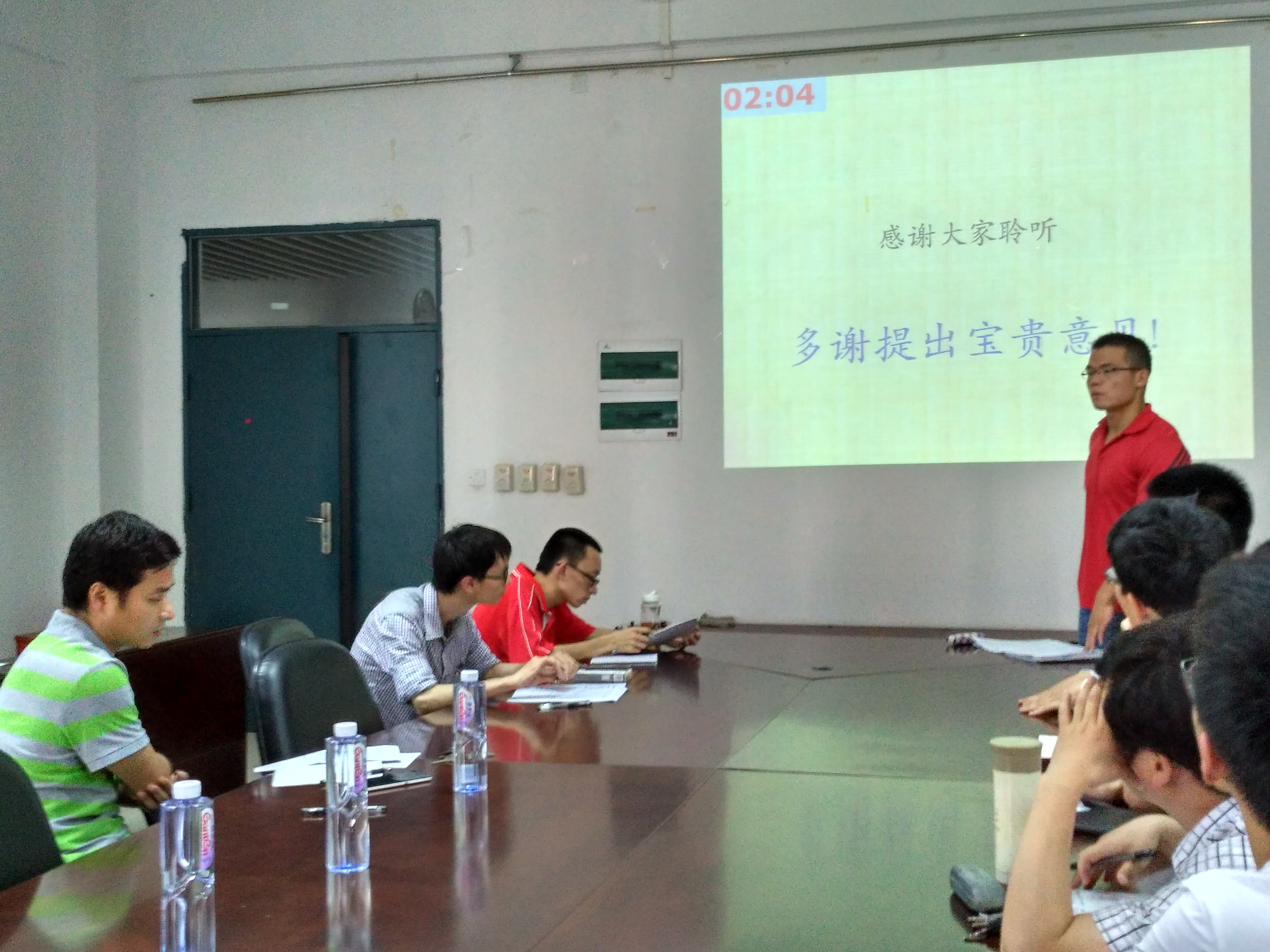 在主持人的简单开场之后,报告会就开始了。首先进行报告的是祝顺才同学的《基于灰色聚类--集合赋权法的变压器油纸绝缘状态的评估》,祝顺才同学的报告详细讲述了他的方法如何进行油纸绝缘的评估。接下来杨建波同学就《平抑风电波动的混合储能控制策略及其容量配置研究》进行了报告。紧接着陈利翔同学对《硅钢片和超微晶铁芯的谐波传变性研究》进行阐述。之后林涌艺同学报告了《基于多测点的电压暂降源定位研究》进行了陈述,再接着刘兴宇同学的《基于条件风险价值的含风电电力系统旋转备用效益研究》进行了报告,其对于改进的粒子群算法(MOPSO)进行说明。接着刘俊同学就《考虑低碳效益的配电网分布式电源规划》中研究的内容进行了解说,最后由林坤杰同学报告了《基于海量历史监测数据的用户谐波污染分析》。