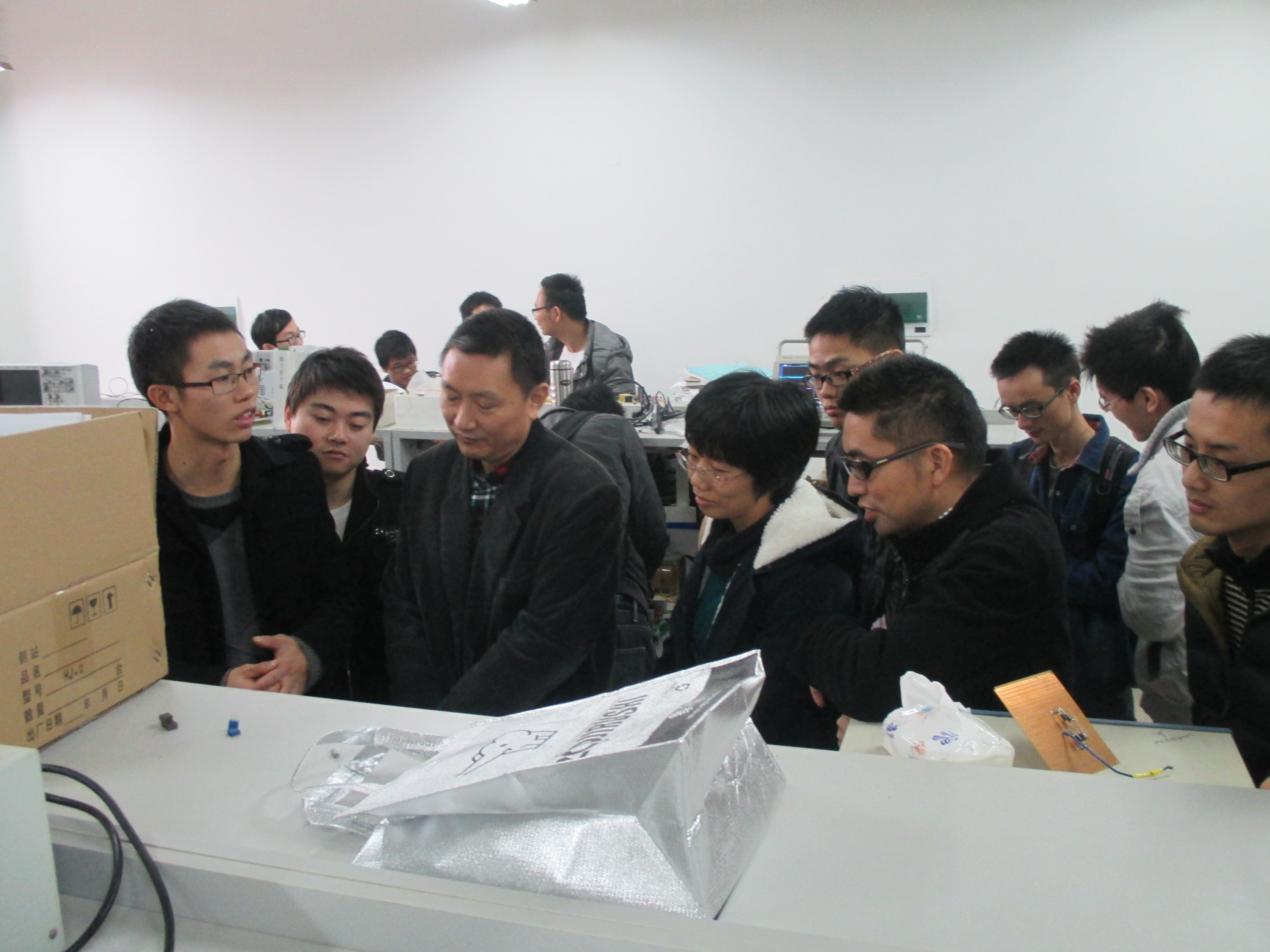 选手介绍完自己的作品后,在北219实验室还进行了实物展示,各个小组都拿出自己设计的作品,老师对作品进行实际的测试,并对其中存在的问题提出自己的看法,还对同学们的后续研究提供了一些创造性地想法。