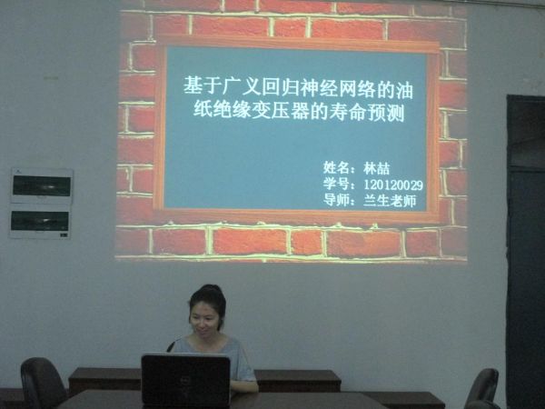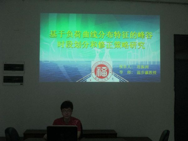 率先出场的是潘进贤,带来的是《基于Vague集匹配的暂降定位方法研究》,把Vague集理论应用到配电系统中电压暂降源研究过程中,从而更加准确地判断电压暂降源的位置。接下来的连振洲讲述的《基于负荷曲线分布特征的峰谷时段划分和修正策略研究》,通过严谨的推导,再辅以丰富的图片证明,提出了一种最优化的峰谷时段划分及其相应电价定价方法。接着,卢鹏铭、程远分别就所研究的《基于不同可中断负荷合同的多时间尺度含风电电力系统调度模型研究》、《基于正序分量的变窗长同步相量测量算法研究》进行诠释,讲述十分清晰流畅,独到的见解和细心地科研态度在其精心准备的报告中可见一斑。最后在林喆的《基于广义回归神经网络的油纸绝缘变压器的寿命预测》精彩报告后,沙龙活动进入尾声。