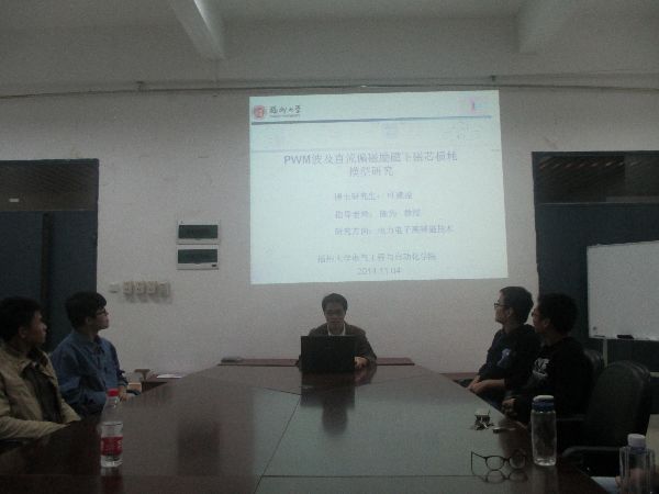 首先报道的是张丽萍博士,她研究的课题是《饱和电抗器磁芯损耗分析》,这个课题是基于企业电抗器产品在工作时由于损耗过大无法满足温升要求而进行优化的背景,张丽萍博士详细分析了电抗器的工作状态以及,以及在脉冲波激励下的等效正弦波损耗模型的推导和计算。接着是邹阳博士的报告,邹阳博士研究的课题是《基于等效电路分析的油纸绝缘老化诊断方法研究》,该研究是以电气特性准确判断电力系统中电抗器和变压器绝缘系统的老化程度,相比于现在用化学检测的方法有很大的优点,具有很强的工程运用价值。然后是曾汉超博士的报告,曾汉超博士研究生的是新能源领域,提出了《多输入并联分时供电Buck型供电系统》,其研究内容是在多个新能源并联供电时采用分时的方法可减少半导体器件的应用,电路拓扑更加简洁。再然后是叶建盈博士的关于《PWM波及直流偏磁下磁芯损耗模型研究》,该研究针对目前大部分变化器的磁元件工作在PWM模式以及直流偏磁模式下传统的磁芯损耗计算方法不准确而提出的一种改进测量方法,利用差值法的思想能够精确测量磁芯损耗,并且建立了损耗模型。最后是苏金州博士关于《适用于交流电磁电器的失效机理分析平台研制》,苏金州博士详细介绍了交流电磁电器失效的机理,以及分析平台的关键技术和创新点。