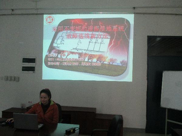 第一个做报告的是李超博士,他介绍了激磁式光学电流互感器磁与温度耦合特性理解及研究,他以清晰的思路结合形象的图形说明向同学们讲解了周围环境温度变化对光学玻璃电流传感头及传感光路上温度分布的影响情况;接下来的是卢文成同学所分析的新型拓扑结构是关于磁共振无线电传输系统方面的报告;紧接的许晔、苏晓艺和董钊分别向大家介绍了采用不变矩的谐振接地系统故障选线新方法、光学电流互感器的设计和并网型太阳能光伏发电系统的研究。五位同学独到的见解和细心的科研态度赢得了在场师生的一致好评。