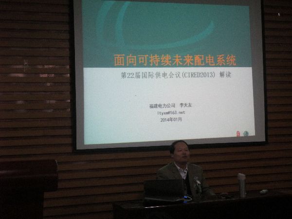 据了解,李天友副总工系国家电网公司优秀企业管理专家,国际供电会议(CIGED)中国国家委员会成员,高级工程师。他长期从事配网技术管理和研究。李天友副总工围绕着新型配电系统主题,结合翔实的数据、典型的案例和形象的图例向学院师生们重点介绍了芬兰等国家在智能配电网网络元件方面的创新设计,阐述了多项国际上值得借鉴的经验,并表示新型配电系统顺应着发展趋势,可持续再生的能源将成为主流,第三次工业革命或许就发生在明天。