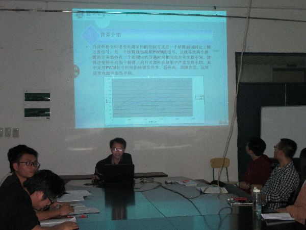 会议室举行了电机与电器研究生学术沙龙活动。此次请到的指导嘉宾是江和老师。郭艳威、黄旭超、戴志远、林莹莹、沈辉玲、王聪六位研究生分别做了报告,介绍了自己的研究思路、研究进度与成果,并与在场的老师及研究生进行了交流。