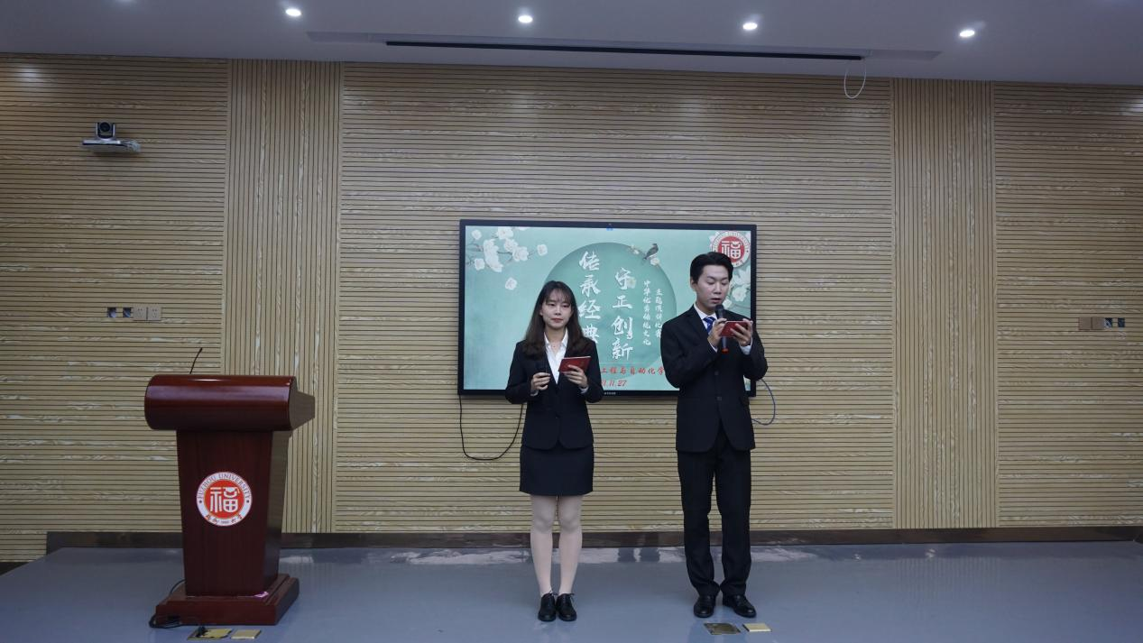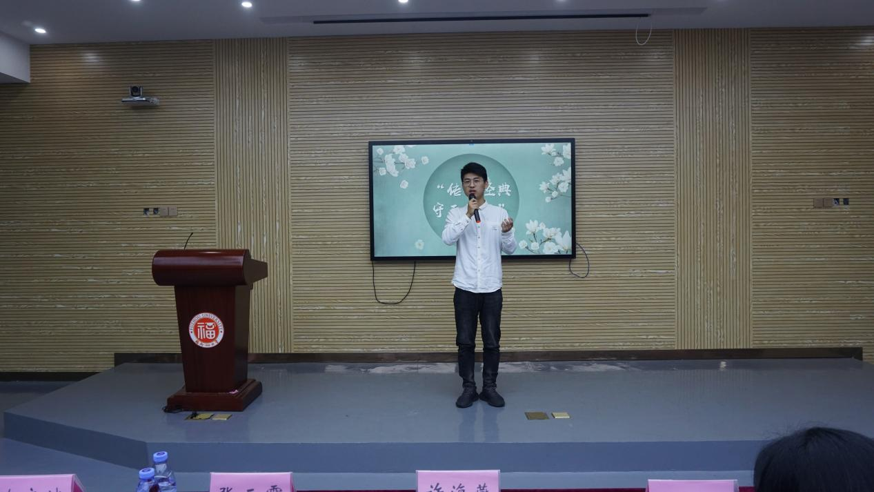 大赛在主持人简短的介绍后拉开了帷幕。本次比赛共有10人参赛,每位参赛选手精神饱满、充满激情地讲述着中华民族上下五千年的灿烂文明。如叶骁勇同学讲述了中华优秀传统文化中的大同思想、伦理道德、处世哲学、美学追求,具有鲜明的民族特色和永不褪色的价值;邱晗同学从自己家乡的红色文化出发,以小见大,讲述了宁化作为中央苏区的核心区、中央红军长征出发地的光辉历史。
