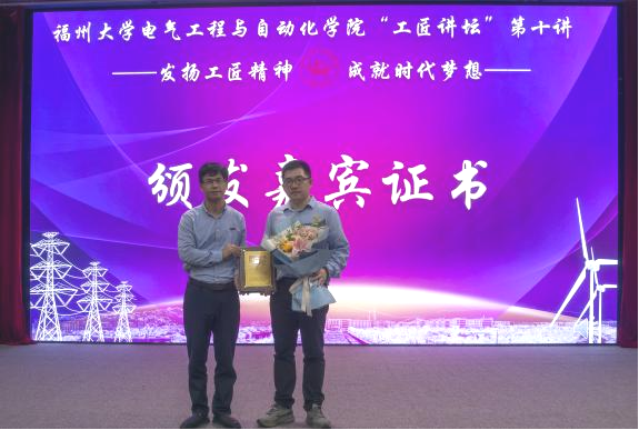 讲座结束后,钟钛申书记为林主任颁发嘉宾证书,学生代表为林主任献花,林主任也为“工匠讲坛”留下珍贵的墨宝。