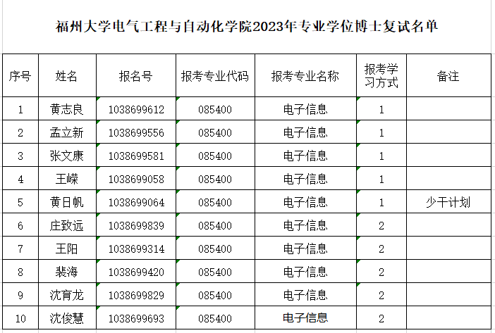 的复试考核。复试考生名单如下: