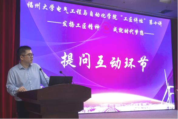 接着,林兴铭主任分享了自己的成长历程。表示,在一线工作时,会面临着工作环境复杂、工作量大等困难,认真好学是关键,前面3至5年,是业务学习的关键期,要善于向身边的技术师傅虚心请教,养成良好的专业素养。其次,林主任强调了团队建设的重要性,作为班长、值长要身体力行,以身作则,作为团队成员要懂得分享,相互促进,才能共同进步,相互成就,共享成果。此外,林主任强调了人才培养的必要性,未来需要更高素质的人才,林主任鼓励同学们夯实专业基础,培养创新思维。