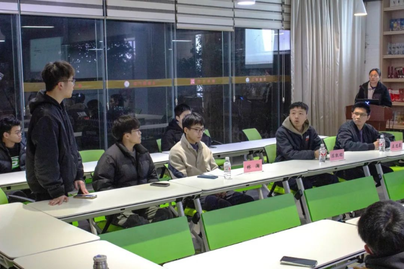 在三位同学的分享结束后,现场的同学们踊跃提问。同学围绕数学建模竞赛的特定环节、实际操作中的困难以及团队合作的有效策略等方面向吴思晟、林瀚和陈凯铭发起了探讨。三位同学对每个问题详尽、耐心地一一作了解答。他们不仅分享了各自对于问题的理解,还结合了实战中的细节,为在座的同学们提供了更具针对性的建议。